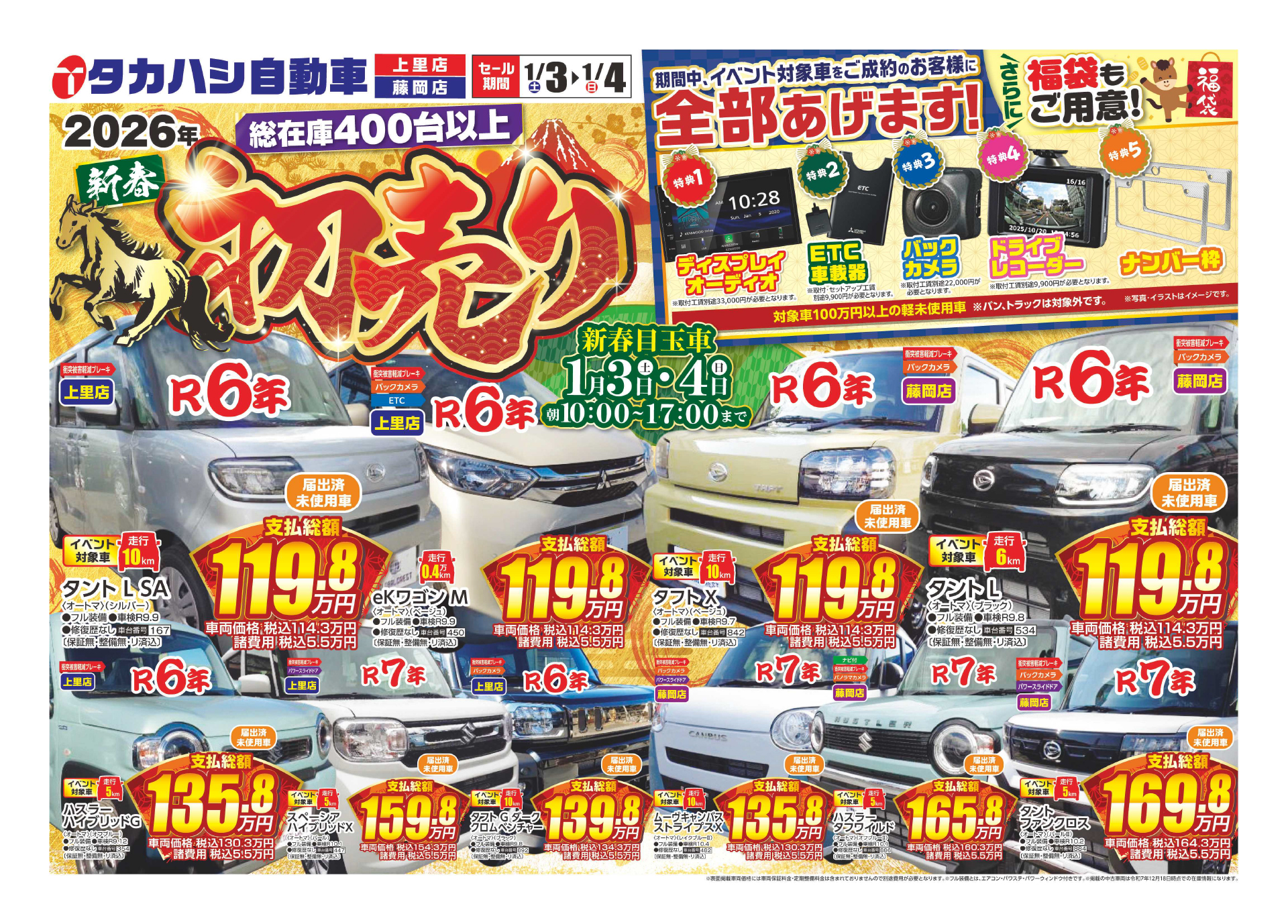 タカハシ自動車から、新春一番のビッグセールをお届けします。