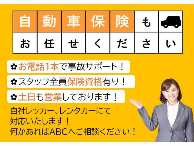 お車に関することは、全て当店にお任せください!新車・中古車販売はもちろん、車検、点検・修理、板金塗装、自動車保険等・トータルサポート致します。