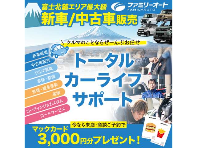 お車の事なら、山梨県南都留郡富士河口湖町船津のファミリーオートへお越しください